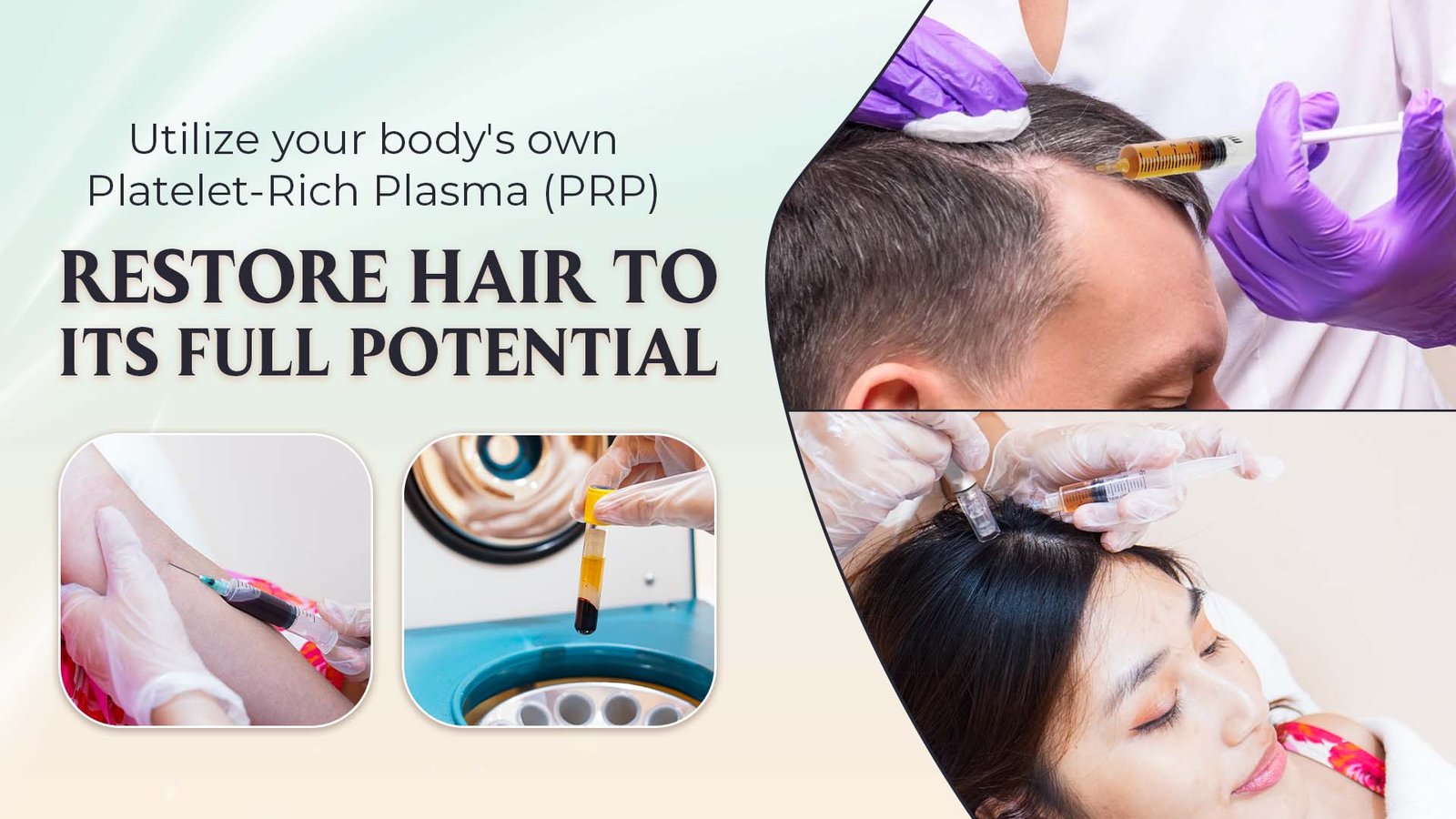 PRP Hair Therapy or Platelet-rich plasma stimulates blood flow to the scalp to promote healthy and natural regrowth of the hair.